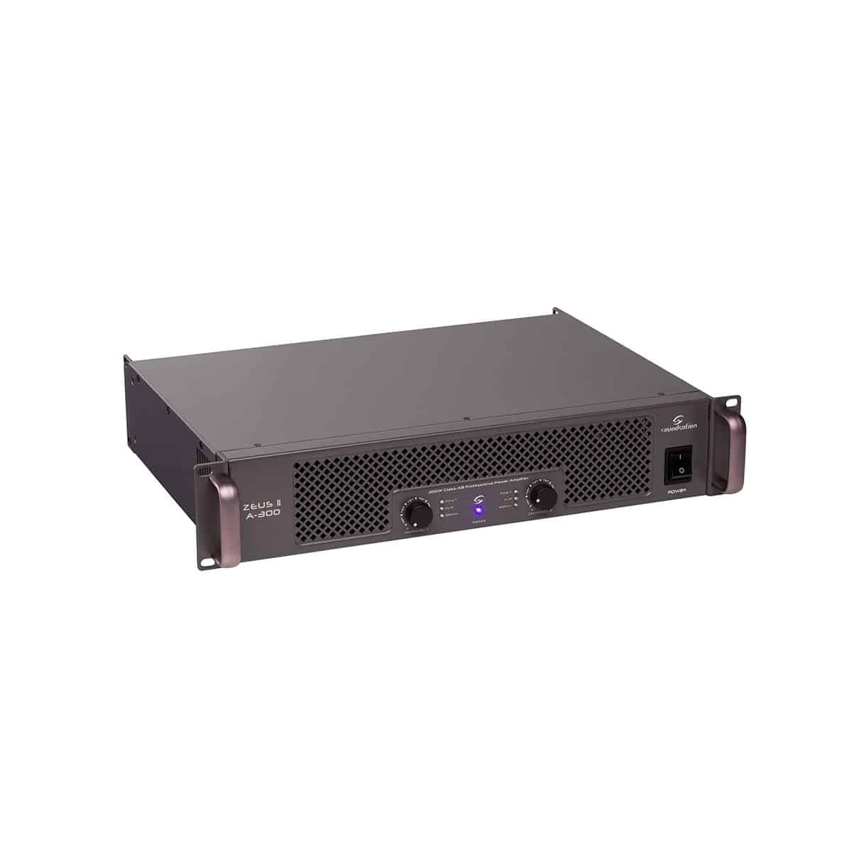 ZEUS II Series represents a new era in affordable, quality power amplification.All five models (3 in AB-Class, and 2 in H-Class) in this series are powerful, ruggedand reliable. They are suited for musicians, DJs, and entertainers as well as housesof worship, discos, clubs and pubs. Models are A-300, A-600, A-900 in AB-Class, and H-1800, H-2700 in H-Class. Features include RCA and XLR inputs, user selectable input sensitivity of 0.775V or 1.4V for the H-1800, H-2700 models, Speakon® and binding post outputs, stereo/parallel/bridge-mono modes, power/fault/signal presence/clip indicators, forced-air cooling.