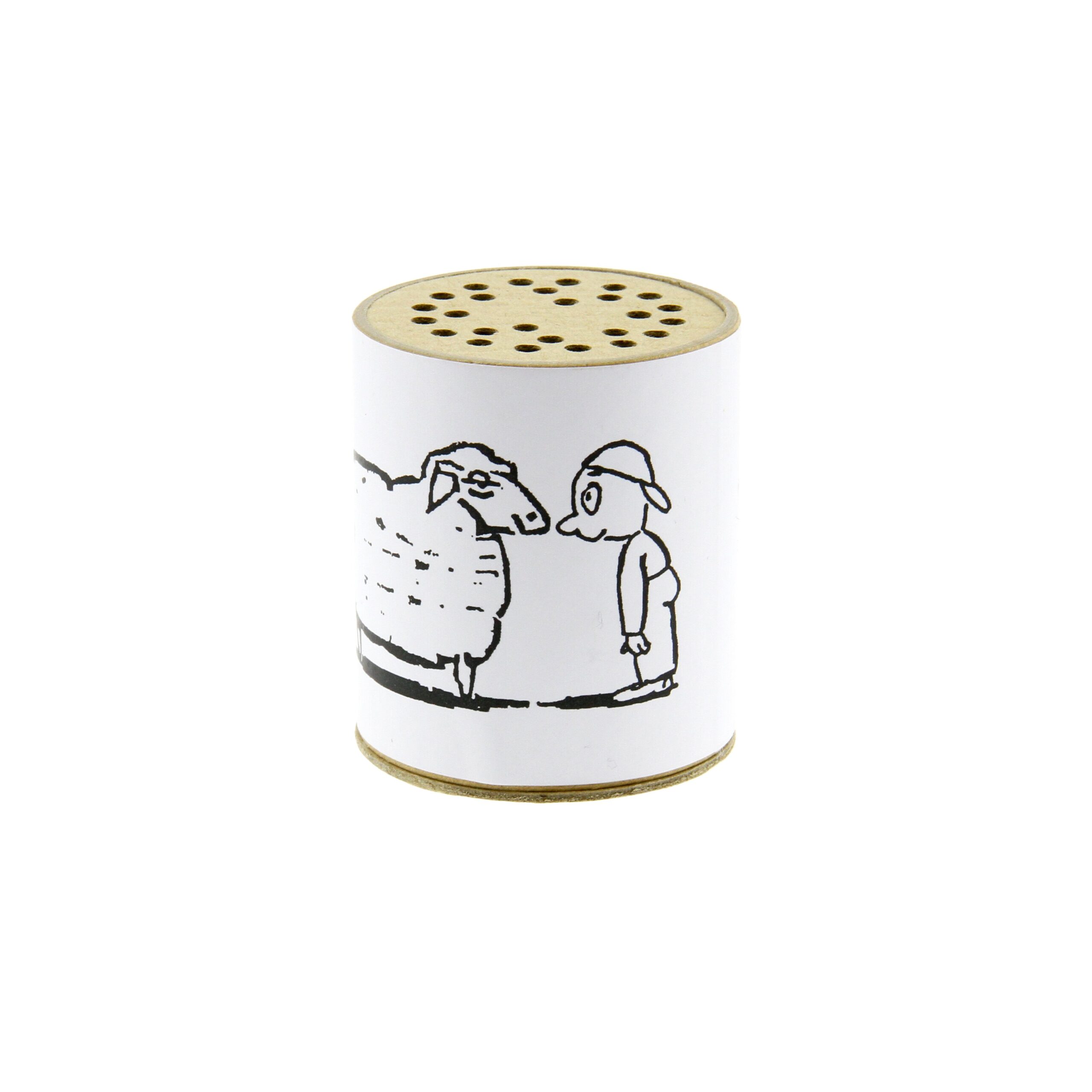 Ir tai veikia be jokių baterijų, nes bliovimas gaminamas mechaniškai. Mažas stūmoklis išstumia orą pro skyles apverčiant stiklainiuką, ir taip išgaunamas tipiškas „beeee” garsas. Ar avių balsai primena jūsų vaikystę? Tuomet turbūt turėjote ūžiantį meškiuką! Mūsų avių balsai skamba labai panašiai.
