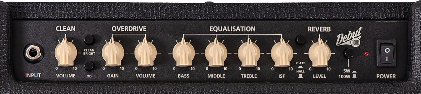 Debut 100Rs yra paprasti ir elegantiški stiprintuvai. Idealiai tinka pedalų naudotojams, Debut 100Rs orientuojasi į toną ir naudojimo patogumą, o ne į nereikalingus „varpelius ir švilpukus“. Šie universalūs stiprintuvai puikiai tinka visų lygių gitaristams, nesvarbu, ar grojate miegamajame, praktikuojatės mažame kambaryje, ar pasirodote scenoje. Su diskretiniu MOSFET priešstiprintuvu, patentuota ISF tono kontrole, skaitmeniniu reverb, linijiniu įėjimu, garsiakalbio emuliuotu linijiniu išėjimu, serijiniu efektų loop’u, galios sumažinimu ir dviem pedalais valdomais kanalais, Debut 100Rs yra puikus pasirinkimas praktikai, įrašymui ir koncertams, taip pat ideali priemonė gitaristams, ieškantiems paprastumo, galios ir tono analoginiame pakete.