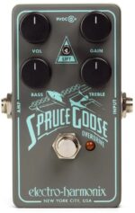 Spruce Goose variklis yra overdrive grandinė, žinoma dėl savo natūralaus išsiskyrimo ir stiprintuvo tipo atsako. Ši grandinė yra pakelta į naujas aukštumas naudojant LIFT jungiklį, kuris pasirenka tarp 3 įėjimo stiprinimo lygių. LIFT efektyviai veikia kaip įėjimo stiprinimas, padidindamas priekį drive grandinės, smarkiau smūgiuodama ir sukurdama labiau suspaustą, prisotintą toną, vis dar išlaikant dinamišką jausmą ir skaidrų toną. GAIN ir VOL rankenėlės reguliuoja tikslų drive ir išėjimo lygius. Pedalo EQ sudaro TREBLE rankenėlė, skirta aukštų dažnių suvaldymui, ir aktyvi BASS rankenėlė, skirta sumažinti arba padidinti bosinius dažnius. BASS ypač naudinga pridedant storio prie vienos ritės gitarų arba sutvirtinant žemą dažnį šiltesnėms humbucker gitaroms.