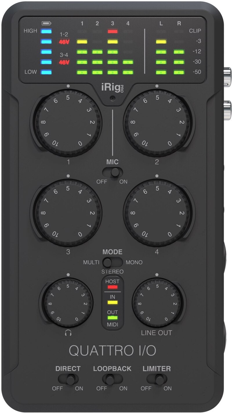 iRig Pro Quattro I/O yra profesionalios kokybės nešiojamas 4 į/2 iš garso ir MIDI sąsaja, aprūpinta viskuo, ko reikia įrašams ir turinio kūrimui — rimtam garsui ir lankstumui bet kur.