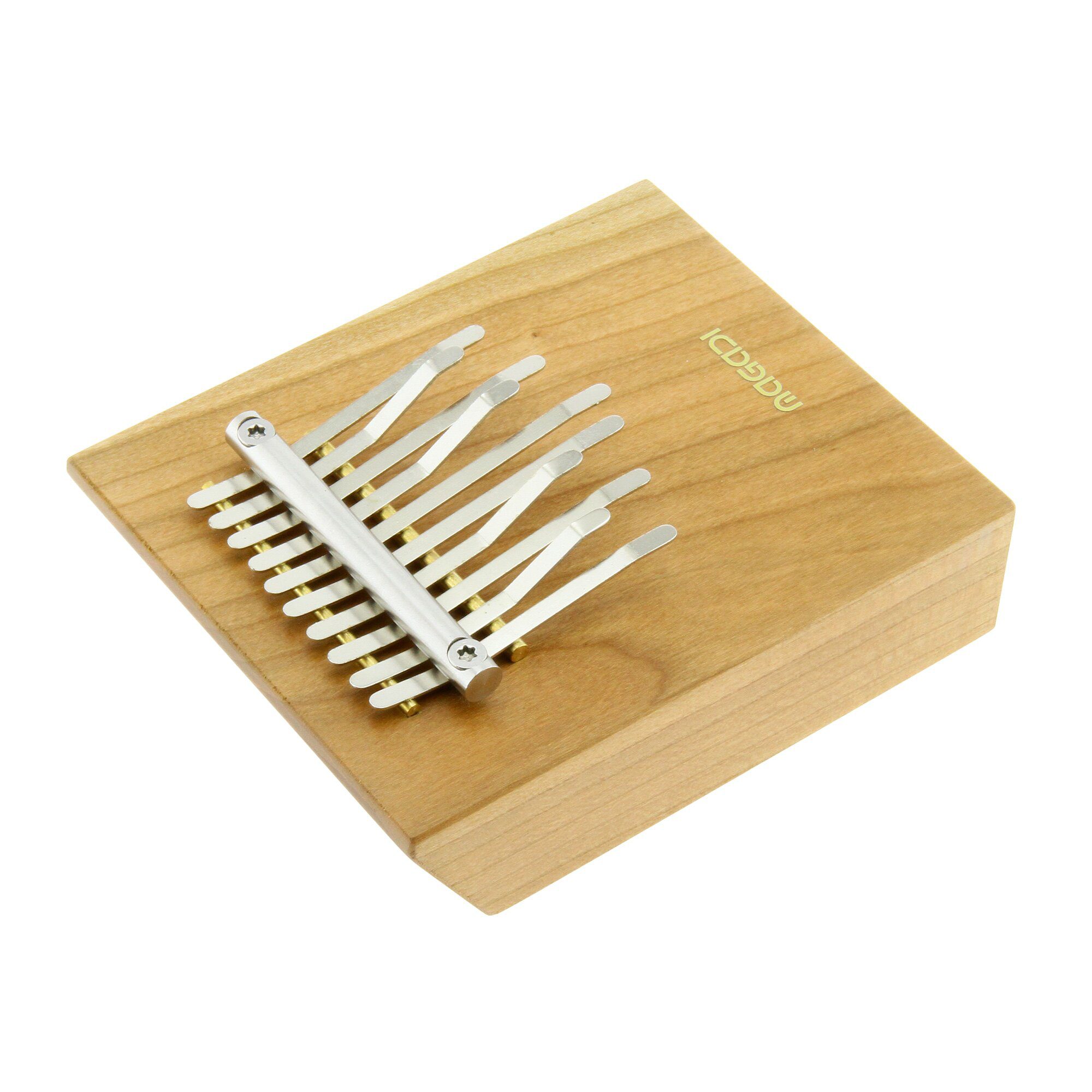 Paprastas, bet gražaus rašto vyšninio medžio blokas iš karto patrauks jūsų dėmesį, o kai nykščiais pakutinsite liežuvėlius, skaidrus, šiltas skambesys šios 10 tonų kalimbos iš „Magadi” jus sužavės. Harmoningas ir lengvai grojamas C-dūro diatoninis derinimas leidžia kurti nesuskaičiuojamas melodijas ir improvizacijas.