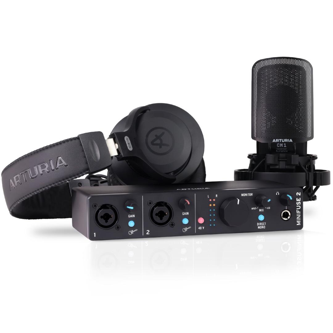 – Sudarytas iš 2-kanalio USB 2.0 garso sąsajos su USB-C jungtimi, Arturia CM1 kondensatoriaus mikrofono ir Arturia EF1 ausinių