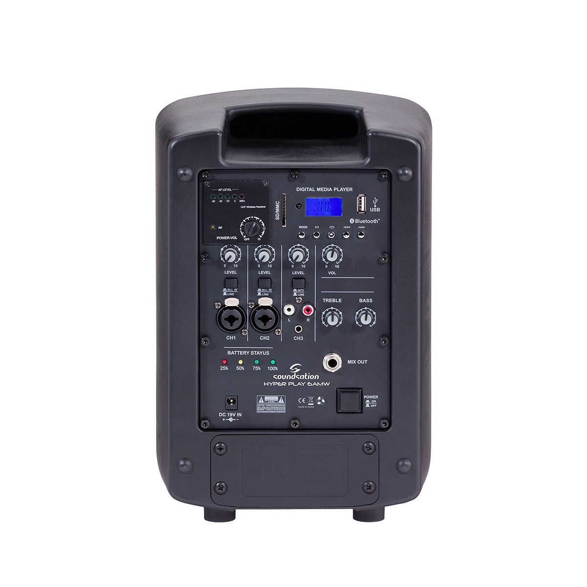 Hyper Play 6AMW įmontuotas 6,5” žemųjų dažnių garsiakalbis, integruotu MP3/USB/SD leistuvu, Bluetooth ir UHF bevieliu mikrofonu. Tinka renginiams, prezentacijoms ar mokyklinėms veikloms. Įrenginyje yra 4-kanalų mikšeris, klasės D stiprintuvas (150 W programinė galia), tvirtas, bet lengvas polipropileno korpusas su metaline grotelė ir standartiniu 36 mm stovo lizdu.