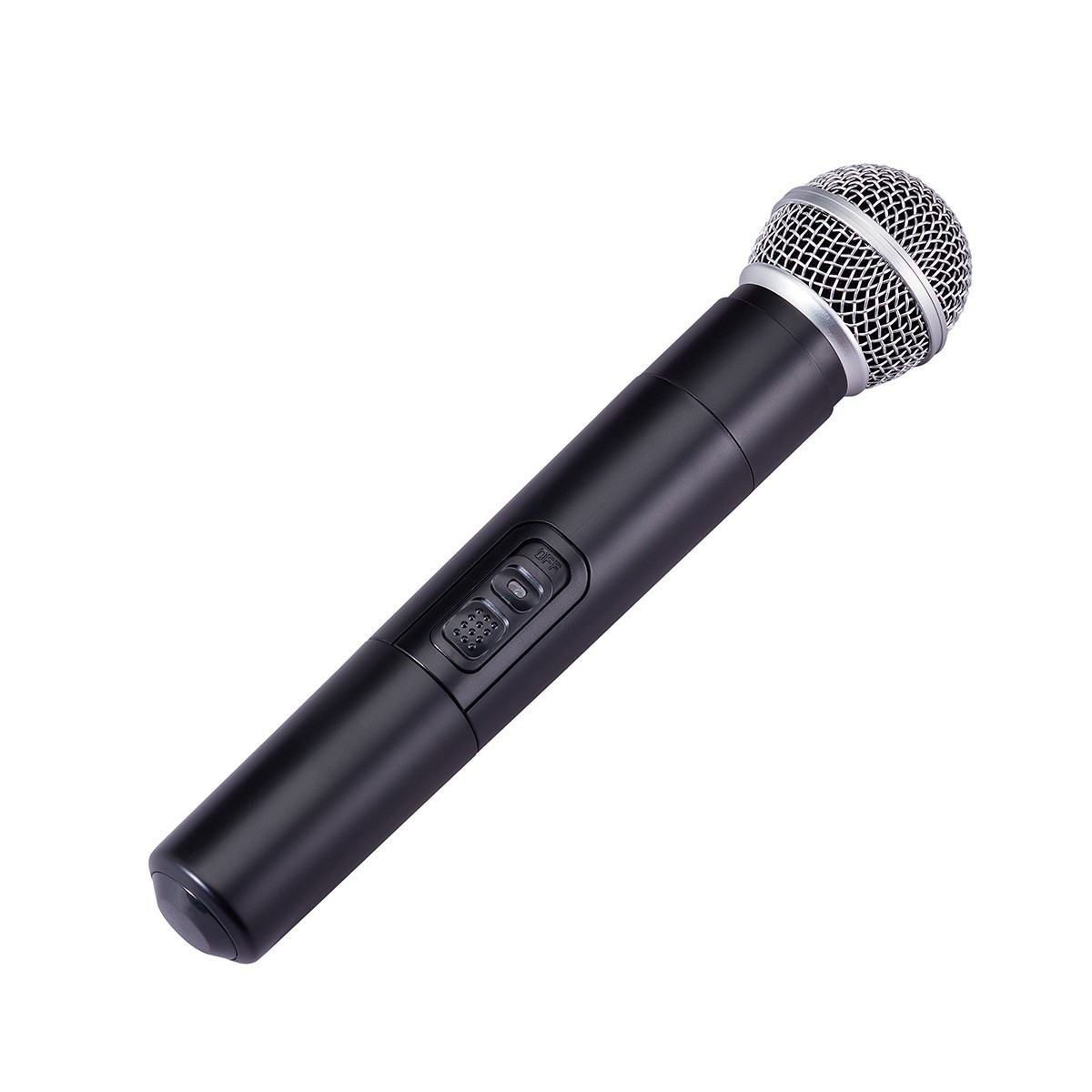 • Belaidis mikrofonas: UHF, 863–865 MHz, 10 mW, FM moduliacija, AA baterijos 2×1,5V, ~7 val. veikimo