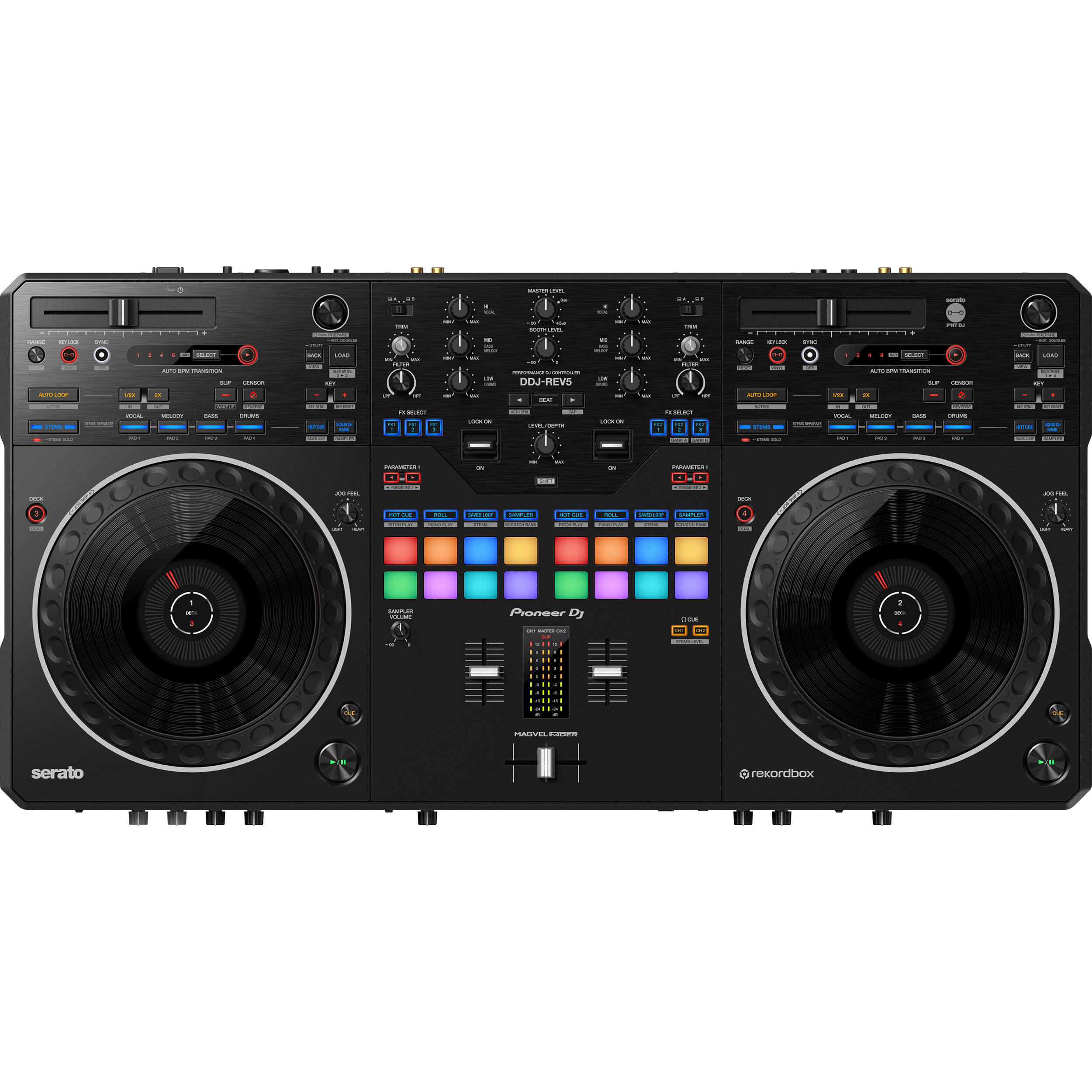 Susipažinkite su DDJ-REV5. Šis 2-kanalų, 4-dekų kontroleris gali pasigirti aukščiausios klasės ritmų kūrimo ir braižymo funkcijomis, kurios buvo sukurtos siekiant supaprastinti pasirodymo galimybes, nesumažinant kontrolės. DJ, norintys išbandyti DDJ-REV5. Šis kontroleris yra aprūpintas įspūdinga jungiamųjų programinės įrangos suderinamumo galimybių suite, kartu su novatoriškais naujais įrankiais, kurie drastiškai padidina išraiškos galimybes. Daugialypis judėjimas, stiebų atskyrimas, automatiniai bpm perėjimai ir dar daugiau sudaro DDJ-REV5 novatoriškų kūrybinių įrankių pagrindą, sukurtą pakelti jūsų pasirodymą