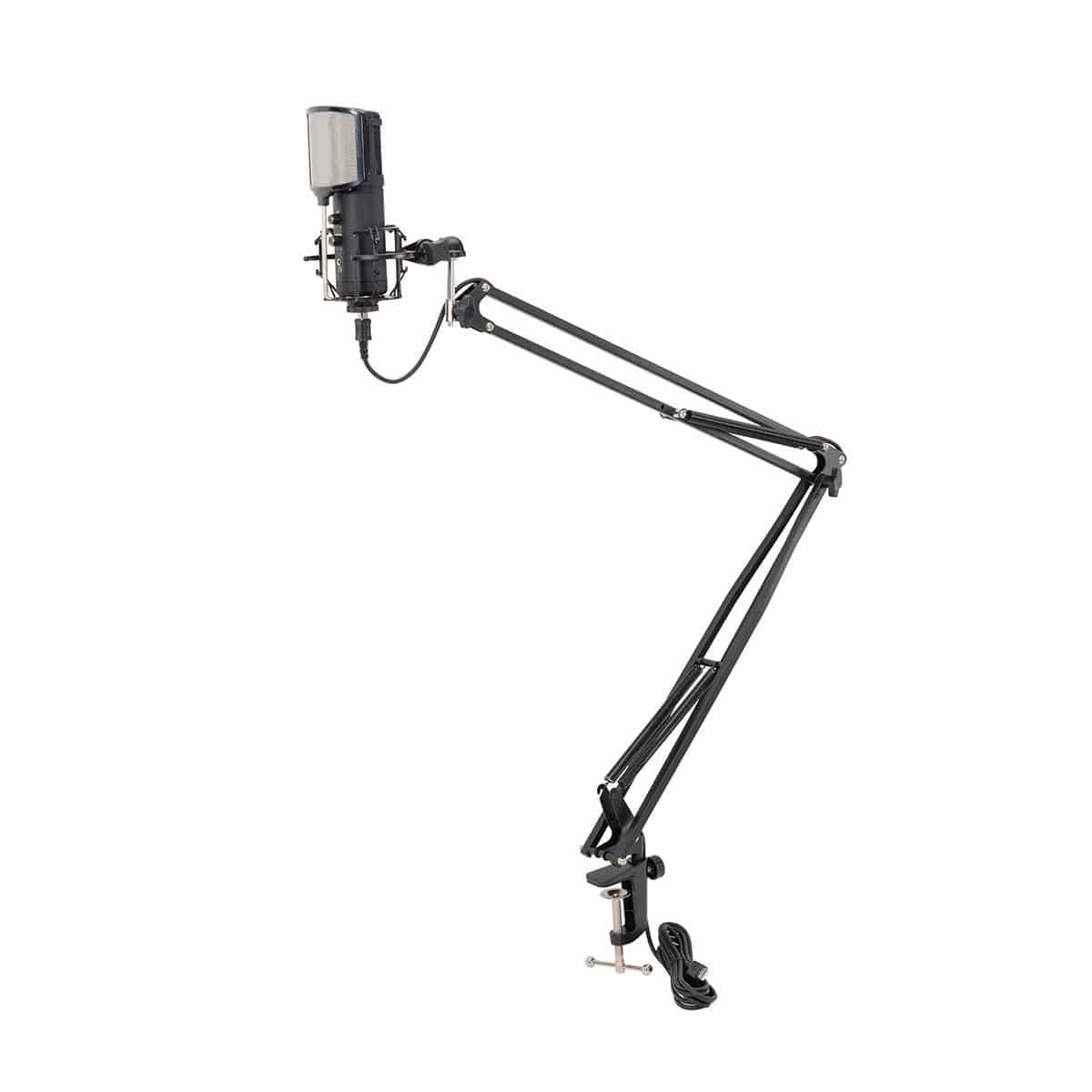 Stalinis mikrofono laikiklis su 4m USB kabeliu, Juodas, 5/8” sriegis