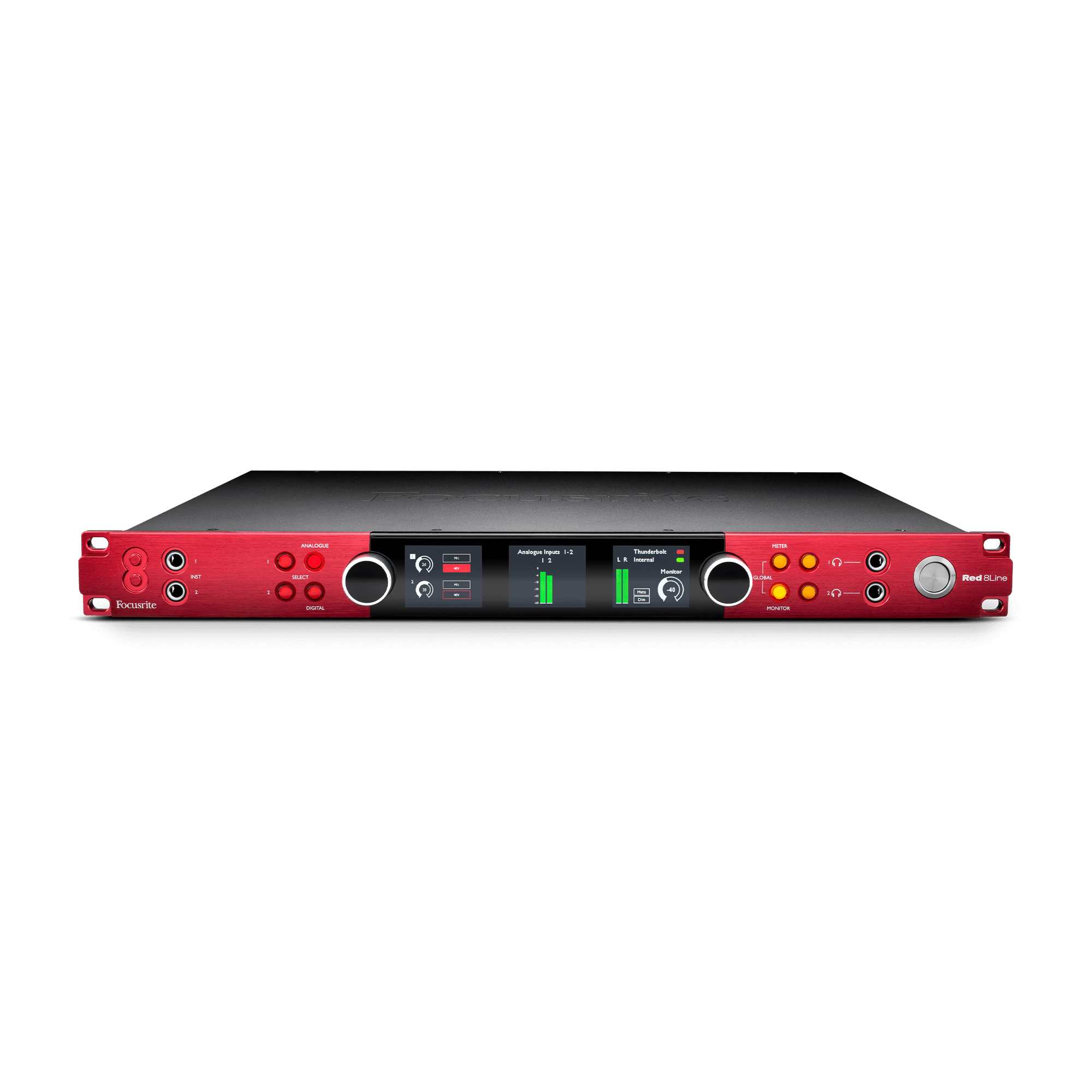 Red 8Line turi naujausią Thunderbolt 3 įgyvendinimą, su Focusrite sesijų patikrintais, ultramažos delsos, tvirtais Thunderbolt tvarkyklėmis. Ši greitis suteikia lankstumo naudoti DAW papildinius realiu laiku, todėl galite pasinaudoti savo DAW apdorojimo galia, kad įrašytumėte per papildinius ir įrašytumėte virtualius instrumentus. Su dviem Thunderbolt 3 prievadais kaip standartas, taip pat galima sujungti Thunderbolt įrenginius, tokius kaip trečiųjų šalių papildinių pagreitintuvai, kietieji diskai, išoriniai 4K ekranai, apdorojimo įrenginiai ir Thunderbolt centrai.
