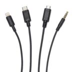 • 1/8″ (3.5mm) garso kabelis, USB įkrovimo kabelis ir maitinimo adapteris taip pat pridedami