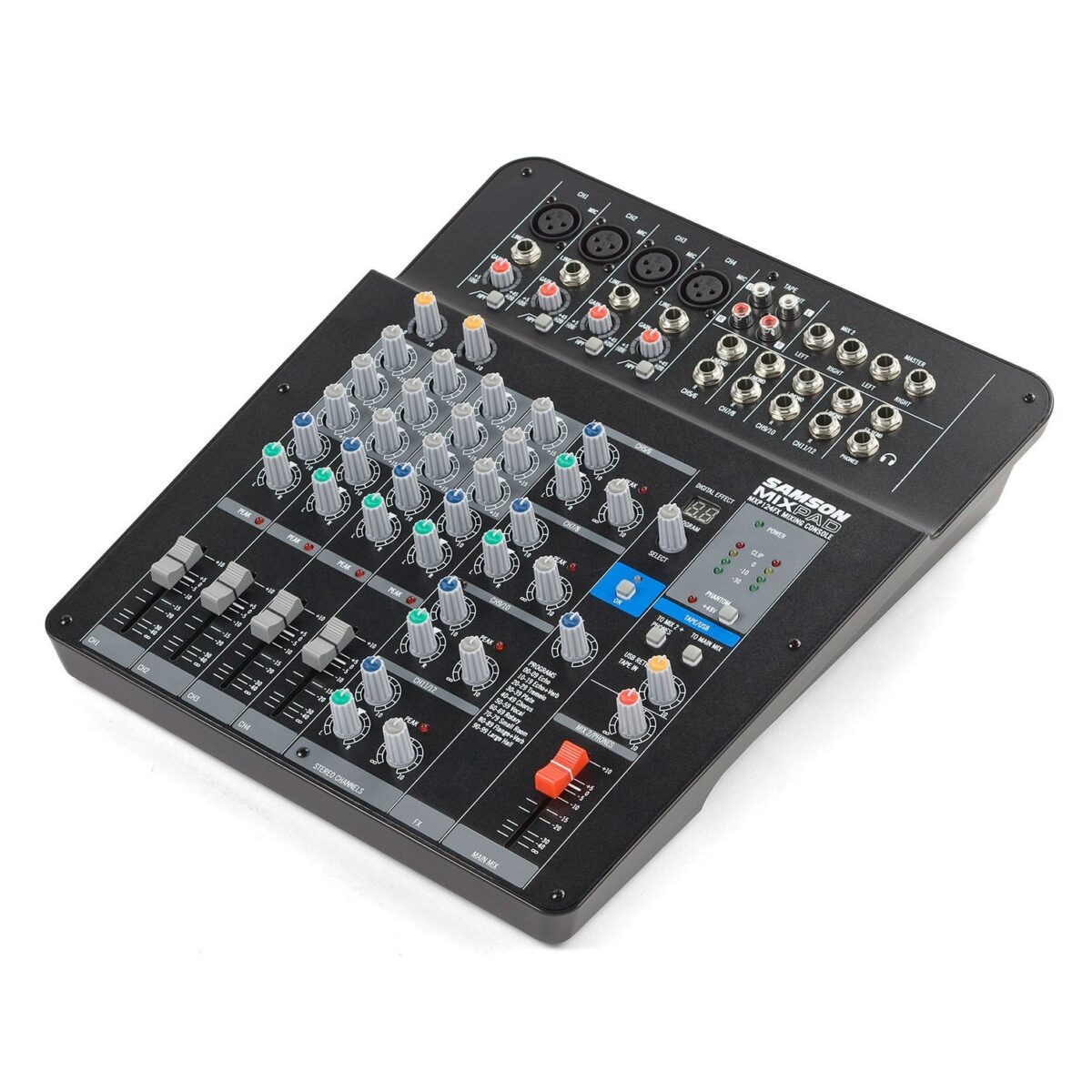 • Keturi A klasės, MDR (maksimalus dinaminis diapazonas) mikrofono preampai su 3 juostų EQ