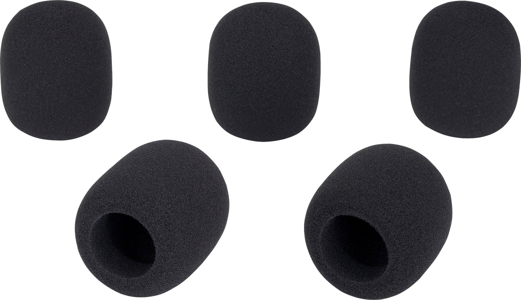 5 vnt. juodų putų mikrofono vėjo filtrų. Sumažina vokalinių garsų ir vėjo triukšmo atsiradimą. Tinka daugeliui populiarių nešiojamų mikrofonų.