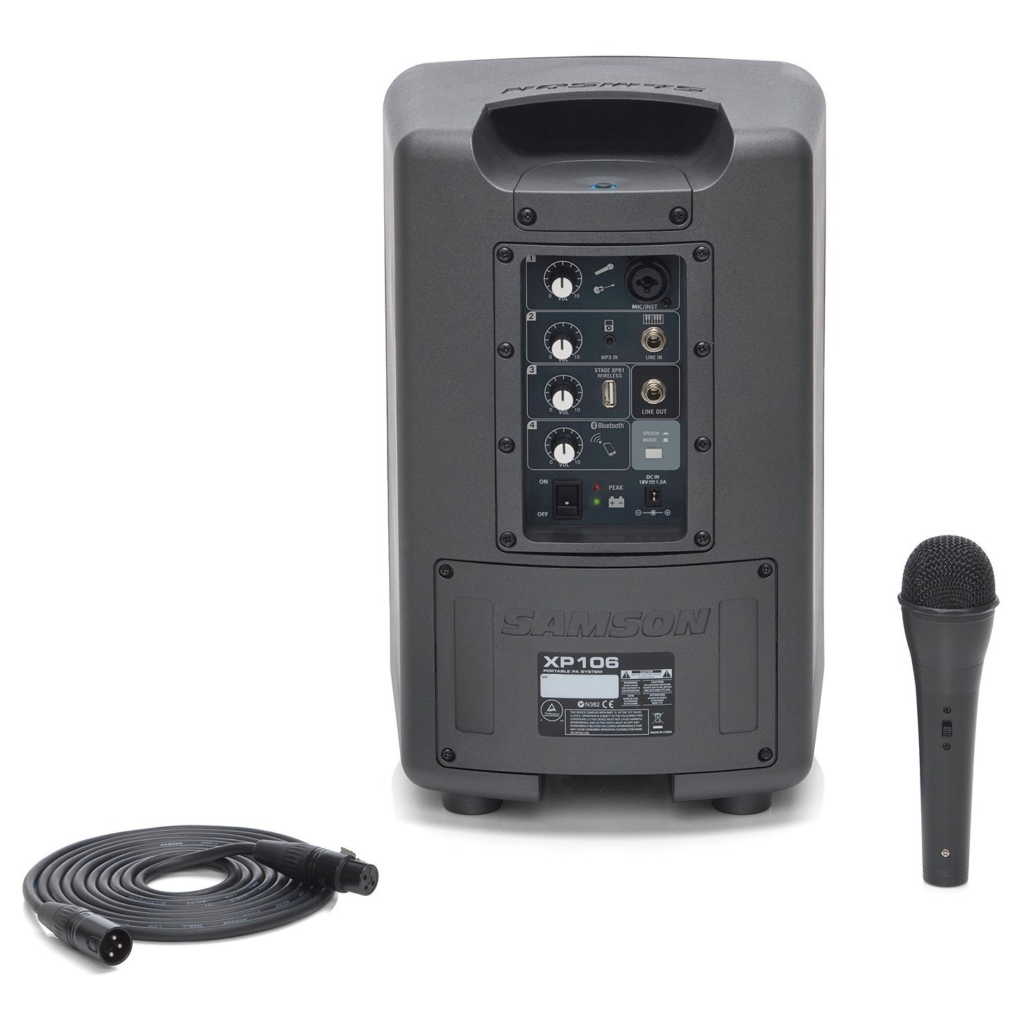 Samson Expedition XP106 Įkraunama Nešiojama PA sistema yra pilna nuostabių funkcijų, įskaitant Bluetooth ryšį ir integruotą 4 kanalų mikšerį. Ji taip pat komplektuojama su laidiniu rankiniu dinamišku mikrofonu, leidžiančiu atlikti improvizuotus pasirodymus ir profesionalias prezentacijas bet kurioje aplinkoje. Tokia universalumas, kartu su švariu ir aiškiu garsu, daro XP106 viskas viename sprendimu klasėms, konferencijoms, ekskursijų grupėms, vakarėliams, taip pat įvairioms lauko programoms.