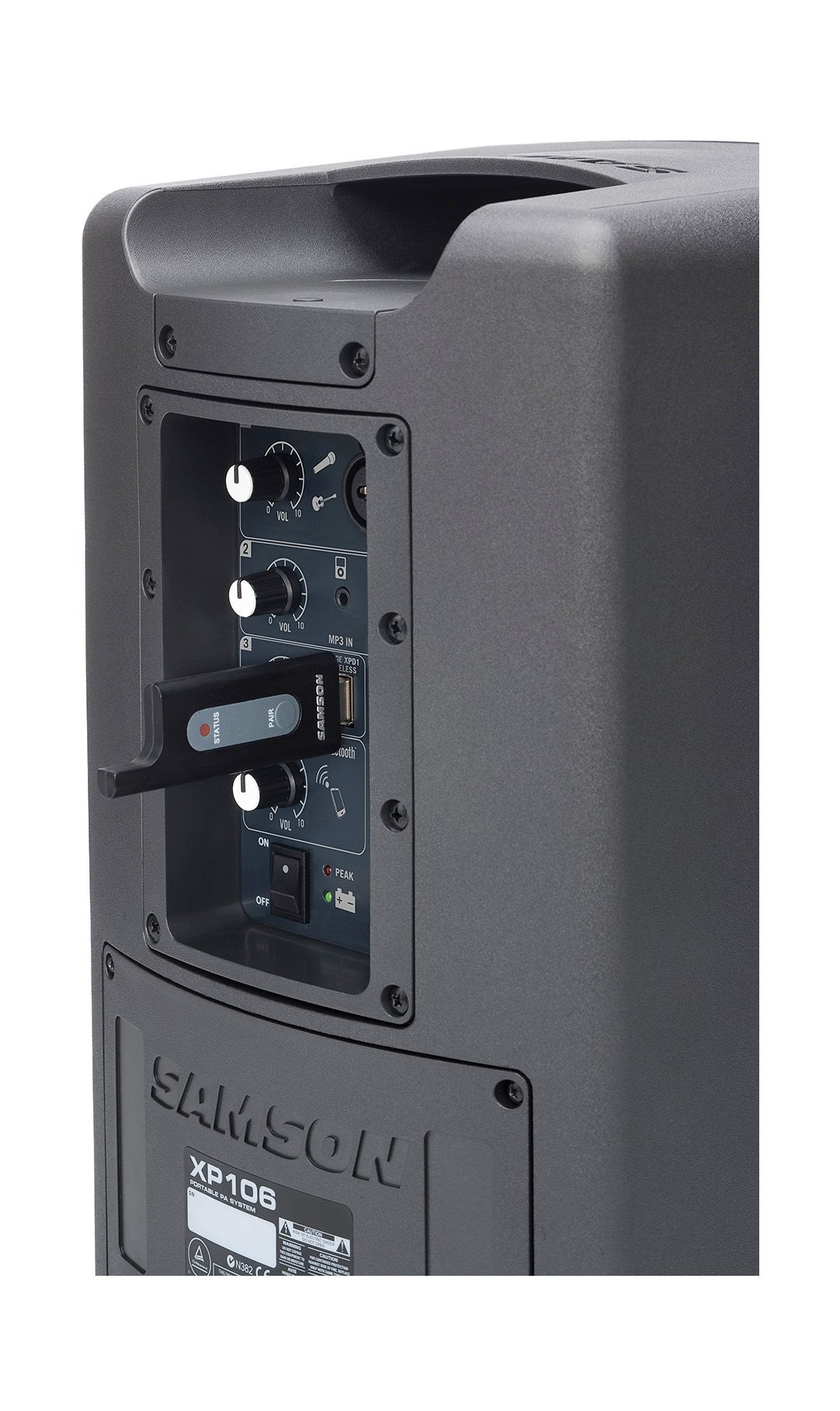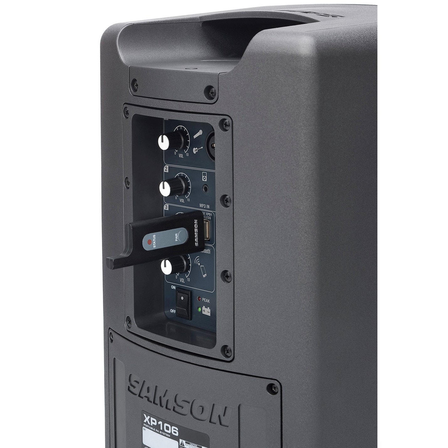 XP106 širdyje yra įtrauktas Stage XPD1 USB skaitmeninis belaidis sistema (licencijos nereikalaujantis 2.4GHz veikimo dažnis), kuris turi belaidį imtuvą, integruotą į USB atmintinę, ir rankinį dinaminį mikrofono siųstuvą su Samson Q6 mikrofono kapsule. Su 100 pėdų veikimo diapazonu (priklauso nuo aplinkos), Stage XPD1 išlaisvina pristatymų ir pasirodymų atlikėjus nuo kabelių apribojimų naudojant XP106w. Sujungus Stage XPD1 su PA 20 valandų akumuliatoriaus veikimo laiku ir Bluetooth ryšiu, XP106w tampa visiškai belaidžiu nešiojamu PA sprendimu.