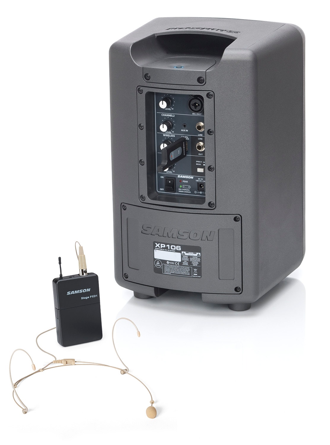 Samson Expedition XP106wDE įkraunamas nešiojamas PA yra visiškai belaidė lengva garsiakalbių sistema, kuri patenkina garso stiprinimo poreikius klasėse, konferencijose, ekskursijų grupėse, vakarėliuose ir kt. Svoris tik 7,3 kg ir 100 vatų galia, XP106wDE taip pat apima ausinių USB skaitmeninę belaidę sistemą, „Bluetooth“ ryšį ir 20 valandų vidinę įkraunamą bateriją.