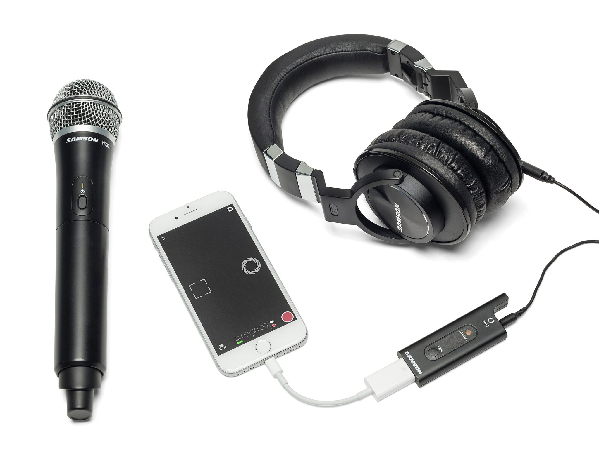 Belaidė rankinė mikrofono sistema su unikalios konstrukcijos USB lazdos imtuvu, kuris jungiasi su išmaniaisiais telefonais, kompiuteriais ir XPD Wireless palaikančiomis Samson nešiojamomis PA sistemomis.