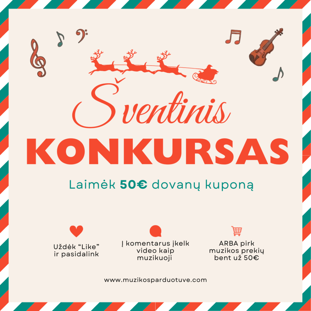 Konkursui skiriami 3 dovanų kuponai po 50 €, skirti panaudoti muzikosparduotuve.lt arba fizinėje parduotuvėje Varpo g. 25, Šiauliai