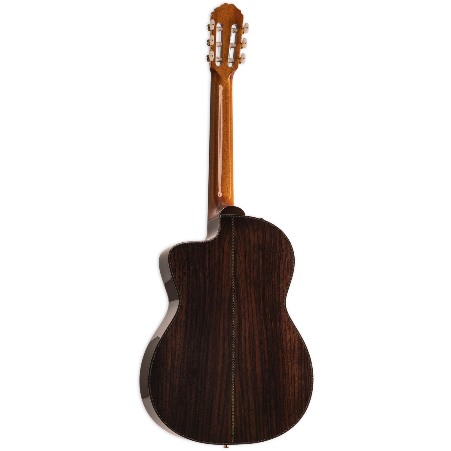 Klasikinė akustinė gitara su nailoniniais stygomis, masyviu Sitkos eglės viršumi, masyvia palisandro nugarėle ir šonais, mahagonio kaklu, ebenu grifu, su išpjova, Takamine CT4-DX Preamp
