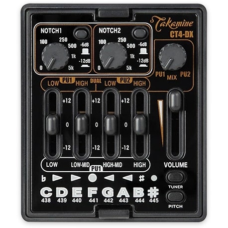 Įrengta Takamine patentuota CT4-DX preamplifikavimo sistema. Dvikanalė preamplifikatoriaus dalis turi keturių juostų EQ su žemo, žemo vidurio, aukšto vidurio ir aukšto dažnio valdikliais, taip pat du “notch” filtrus. Gali būti pridėtas antras pikapas — tuomet abu pikapai turės atskirus dviejų juostų EQ, po vieną “notch” filtrą ir atskirą garso reguliatorių. CT4-DX taip pat turi įmontuotą skaitmeninį derintuvą.