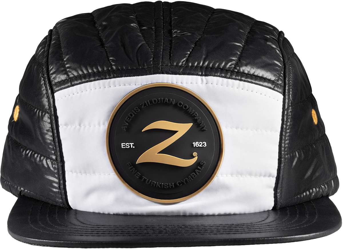 Ši ribotos serijos stovyklinei skirta kepurė pagaminta iš siūto nailono, kad suteiktų papildomą šilumą ir unikalų stilių. Kepurė yra juodos spalvos su baltu priekinio skydelio plotu, auksinėmis ventiliacijos siūlėmis ir juodu nailoniniu dirželiu su plastikine sagtimi. Žymėjimai: apvalus guminis lipdukas priekyje ir siūtas Zildjian ženkliukas ant nugaros dirželio. Ši modernaus dizaino šalto oro kepurė tinka madingam būgnininkui — parduodama tol, kol yra atsargų.