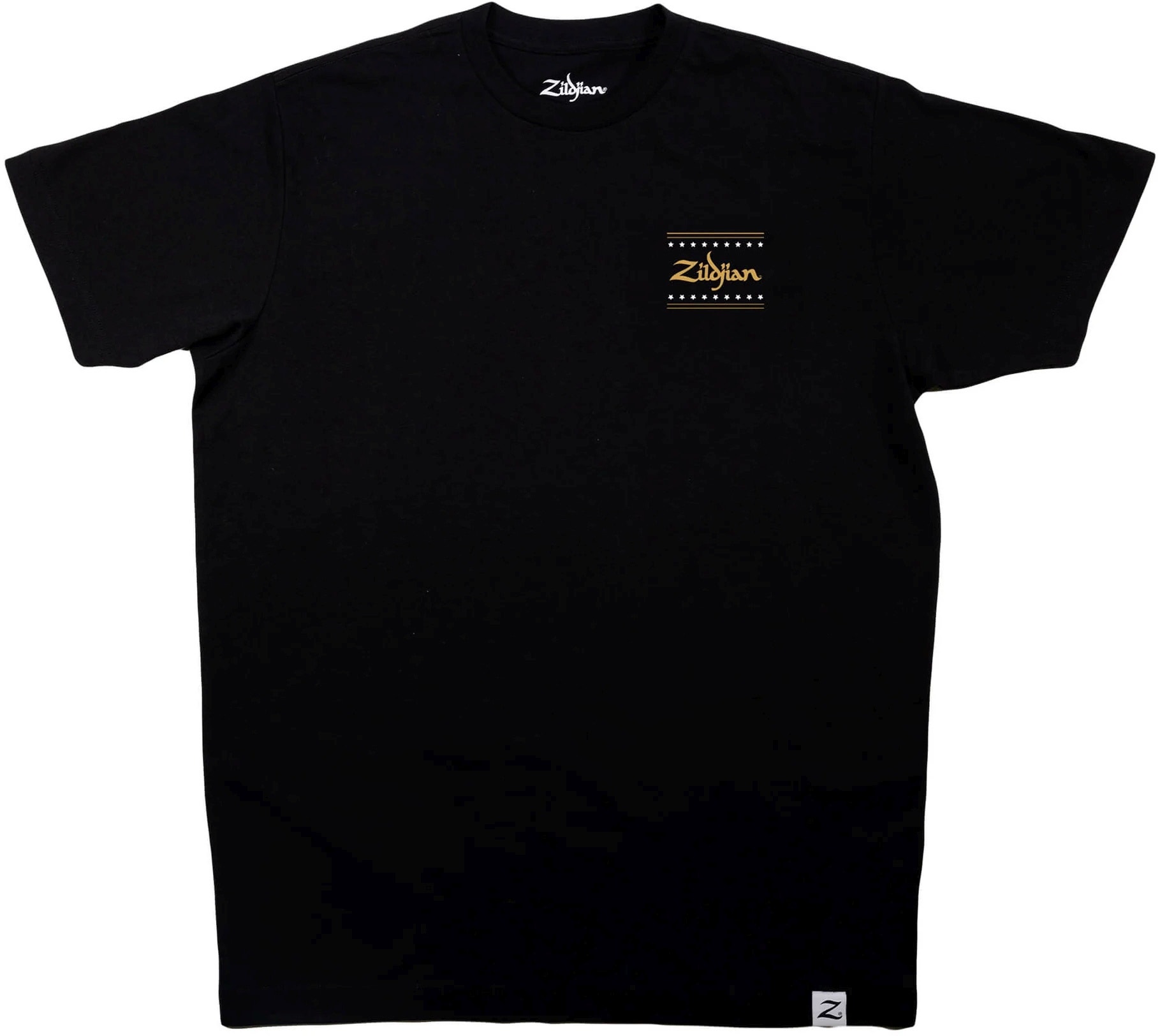 • Auksinis Zildjian logotipas kairėje krūtinės pusėje, frontalinė grafika Ikoninis žvaigždės raštas